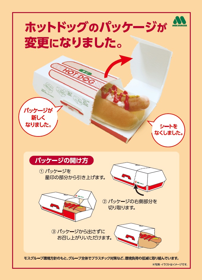 2025年3月より、全国のモスバーガー店舗(一部店舗除く)で新しいホットドッグのパッケージを導入しました。