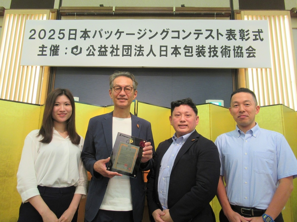このコンテストは、包装におけるデザインからロジスティクスに至るまでの、その年の包装の最高峰と優秀群を決定するものです。表彰式は2025年8月27日(水)に都内で行われ、(株)クラウン・パッケージのご担当者様と当社の本部メンバーが出席しました。