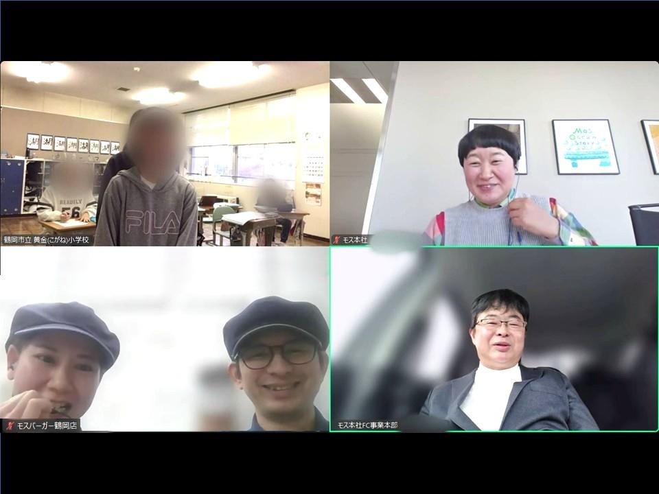 2025年11月21日(金)に山形県鶴岡市立黄金小学校の6年生とモスバーガー鶴岡店、エリアの営業担当者、東京本社をオンラインでつないで授業を行いました。
