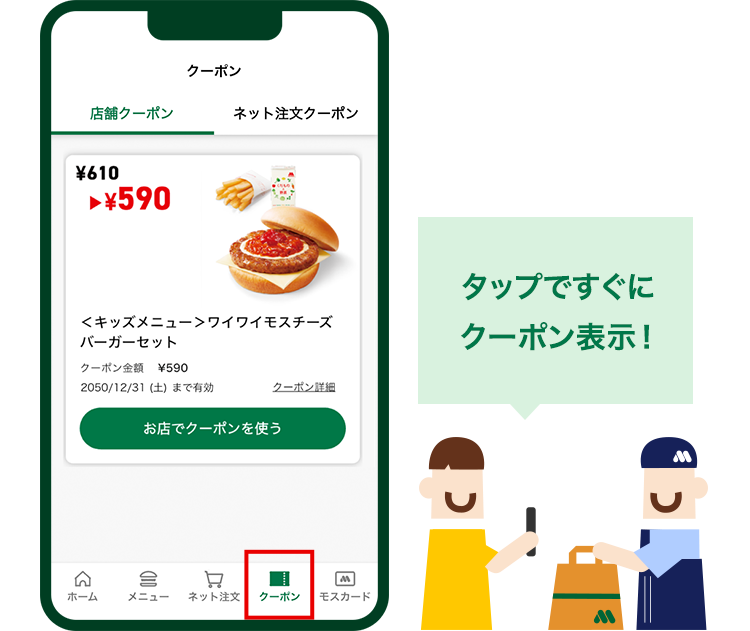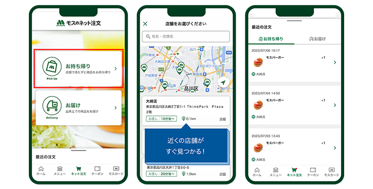 スマホでご注文。ササっと受け取りができる「モスのネット注文」が便利です。