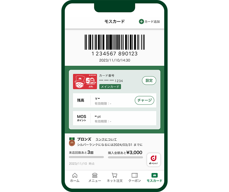 モスカードプログラムランクに応じてMOSポイントが付与されて、とってもおトクです。