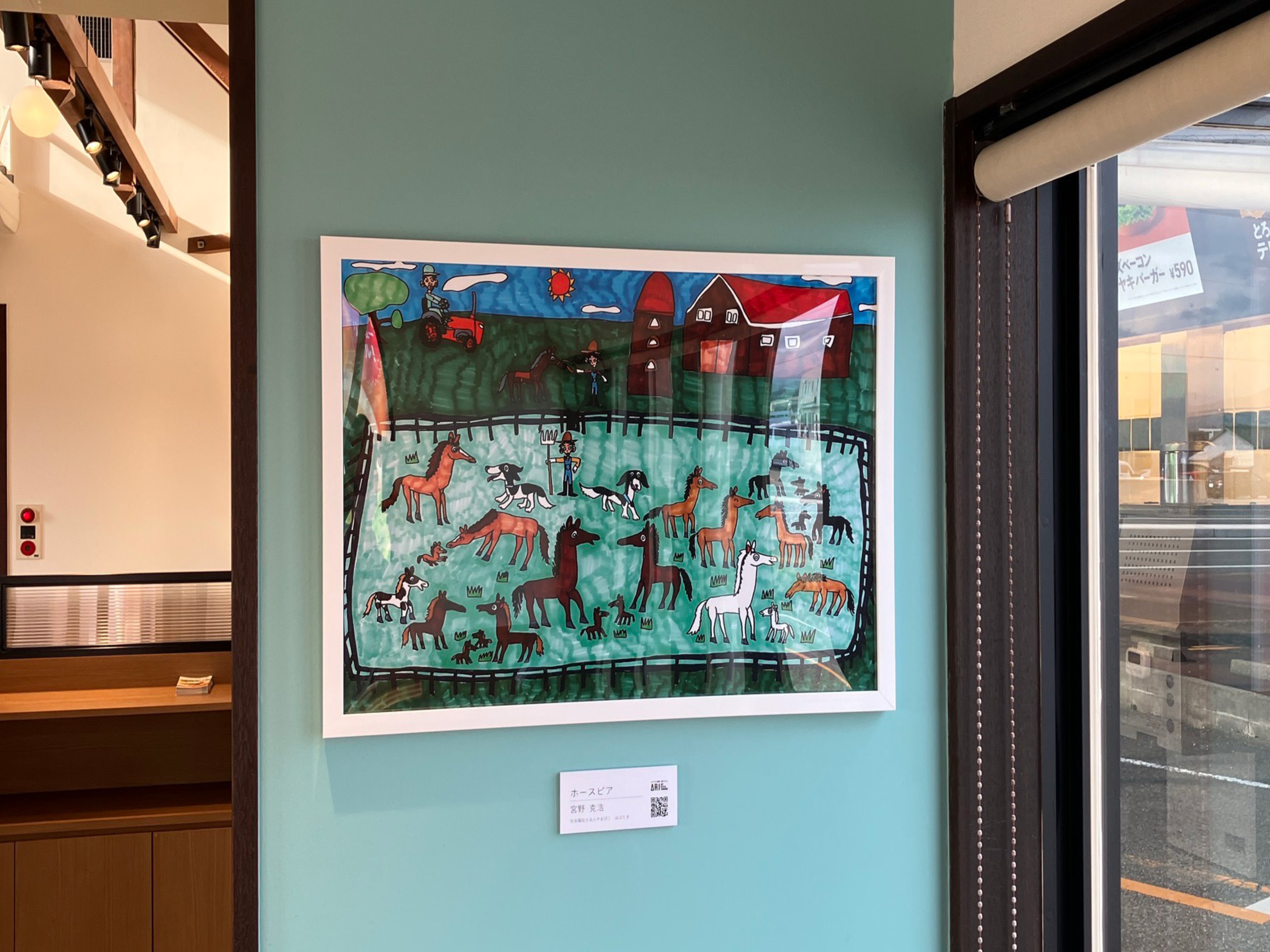 群馬県内の一部のモスバーガーでは、県内5カ所の障がい者就労支援施設で働く方々の作品を展示しています。2カ月ごとに作品を入れ替え、個性豊かな作品を多くの方に楽しんでいただけます。